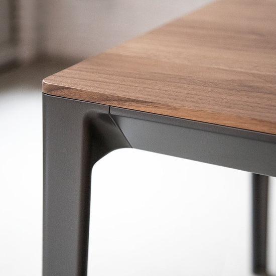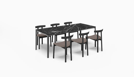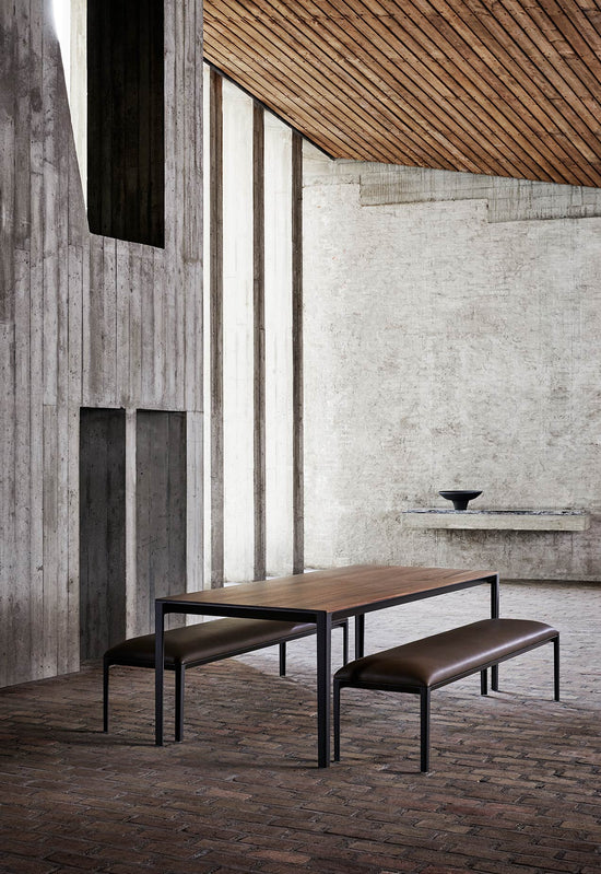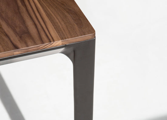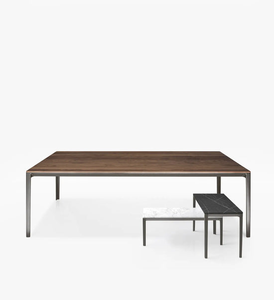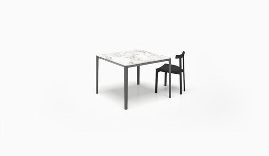 The Able collection is a family of tables that offer a variety of solutions as they are available in several sizes and materials. Cast aluminium legs and aluminium rails support tops in wood, marble and Polaris. The Able Dining Table is an addition to the Able Collection.