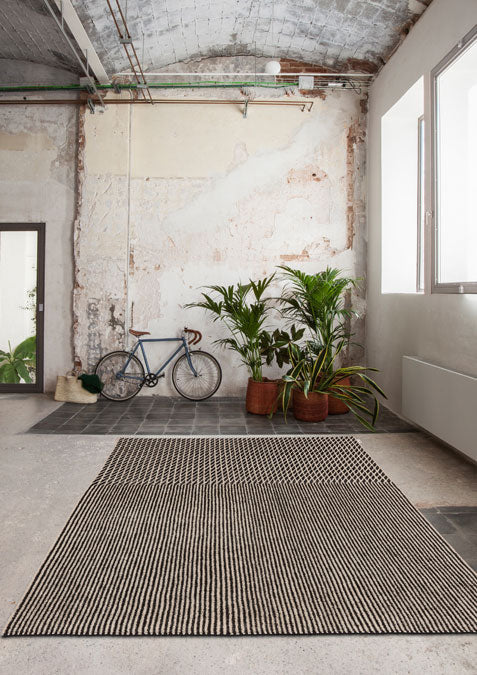Their mastery, meticulousness, and tireless ability to always go a step further, has led them to work on Blur, a collection that offers two different readings. When viewing the rug from afar, an indefinite, unfocused surface is apparent, that gives its name to the collection. Nevertheless, upon approaching the rug, lines and rhythmic rhombuses in different proportions are revealed, in the purest kinetic style.