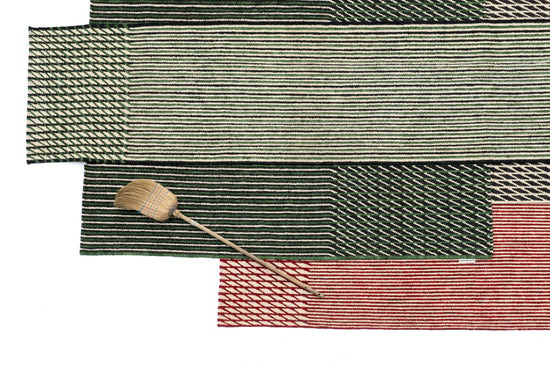 This blurred effect has been achieved by inverting the sense in which the kilims are traditionally woven, which makes the process much more laborious. This change in weaving causes the lines to be blurred, mixing two colours unevenly, creating an aged rug, reminiscent of the past.