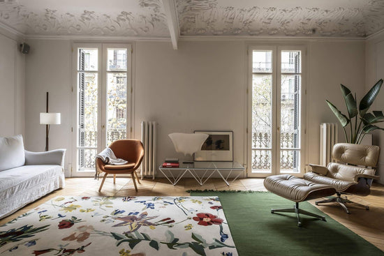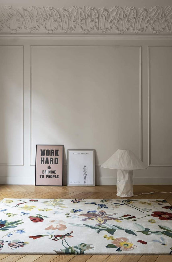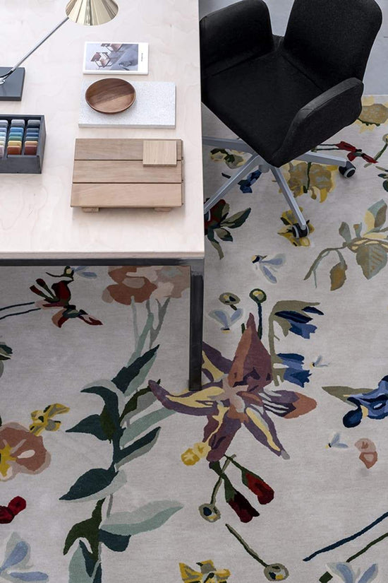 The Promenade model is an exercise in reinterpreting the artist's floral work transferred to the rug. The nanimarquina team has worked carefully on the selection of each of the flowers, paying special attention to the scale and color in search of the appropriate compositional balance to ensure that Promenade is integrated and coexists in multiple spaces.