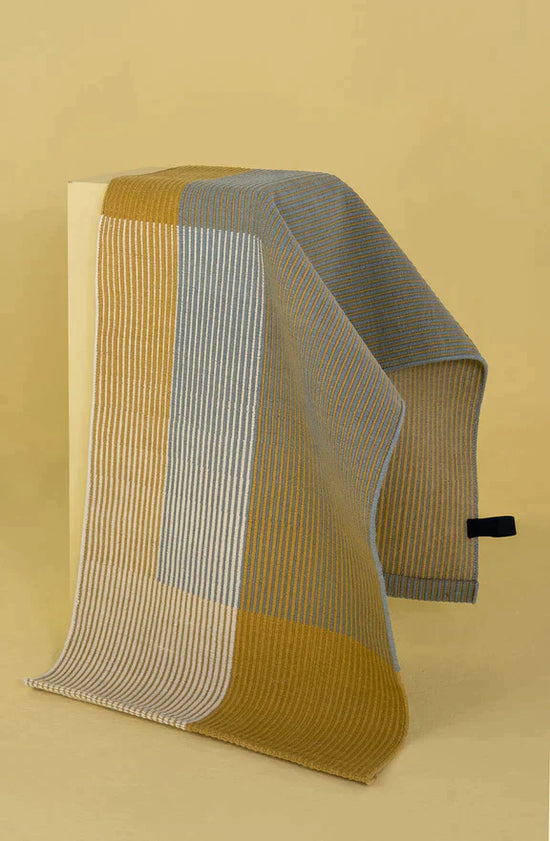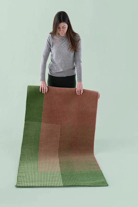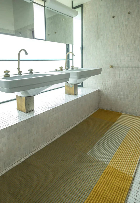 Haze 5 Runner is a rug that brings colour to corridors and gives a sense of spaciousness. A canvas where the designer has experimented with chromatic interactions to create an optical mix combining yellow, earth, and grey tones.