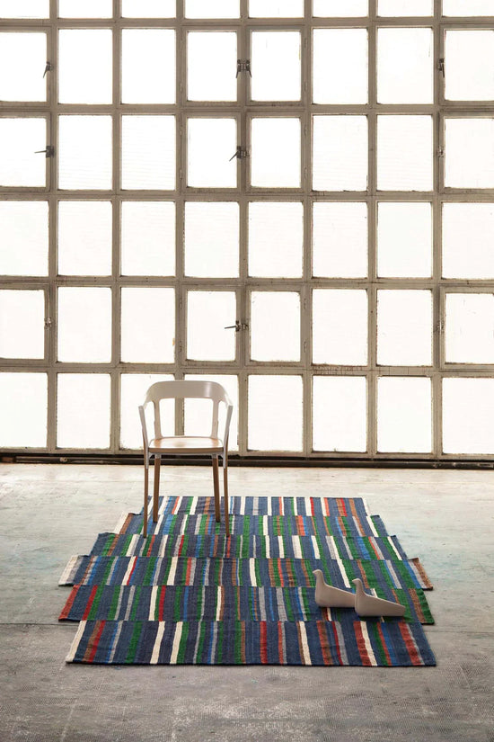 The Lattice rug springs from the organic imagery of the Bouroullec brothers. This constructive exercise uses rectangular bands of colours that create a harmonious composition and define its irregular shape.