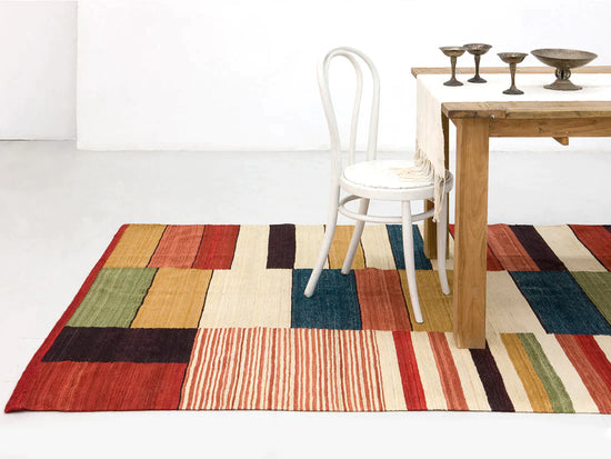 This collection represents nanimarquina's raison d'être: the desire to transform the traditional rug into a contemporary item. Using the ancestral, hand-loomed kilim technique and a carefully selected colour palette, expert craftsmen bring to life the geometric pattern designed by Nani Marquina.
