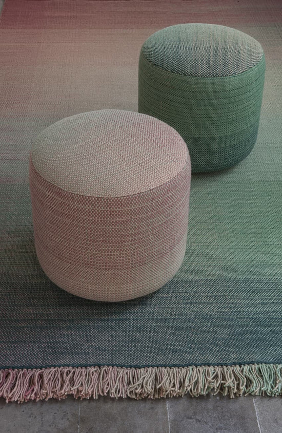 The collection of Shade poufs is born to complement one of our most succesful collections. And as the original rug models are inspired by magical moments in nature where colors melt and speak for themselves. Shade palettes achieve an intricate gradient that leaves no one indifferent.