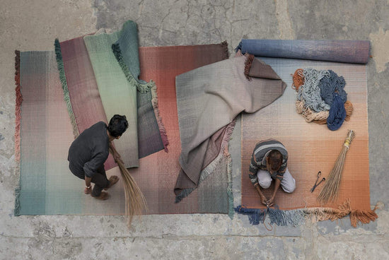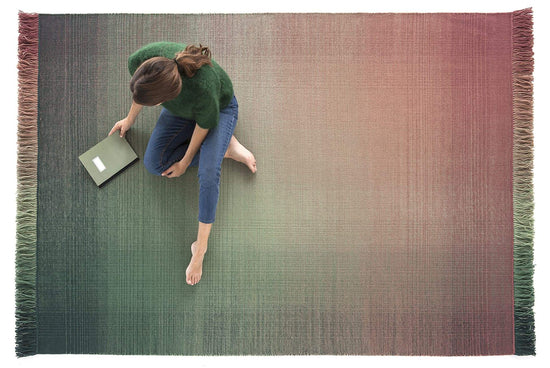 The Shade collection is inspired by magical moments in nature where colors melt and speak for themselves. Designer Begüm Cana Özgür emphasizes: “this is a handmade flat-weave rug that generates an incredible and well-rounded diffusion of color. The surface releases a sense of tranquillity and well-being that is balanced by the penetrating vibration of colors.”