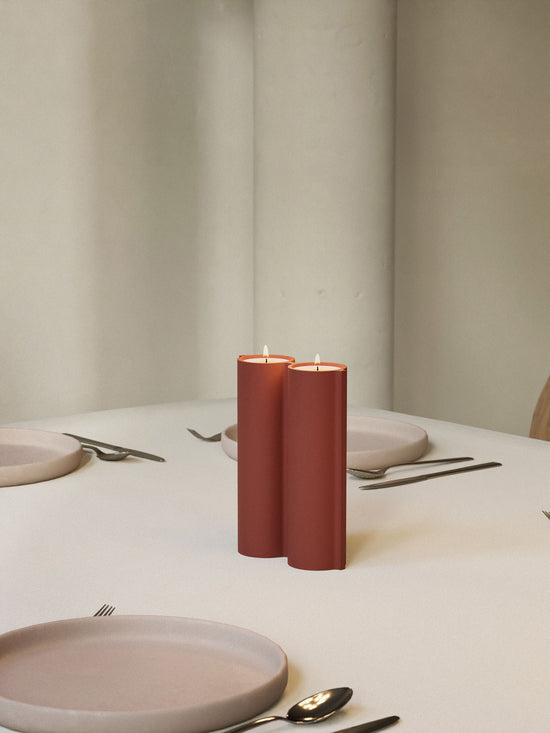 As modular and versatile as the collection itself, Silo makes its debut as an object. A flower vase and candle holder hybrid. From one end, water-resistant extrusions accommodate fresh cut flowers. Flip it over, and it becomes the perfect candle holder. Offered in two, three or four cylinders, and in various heights.