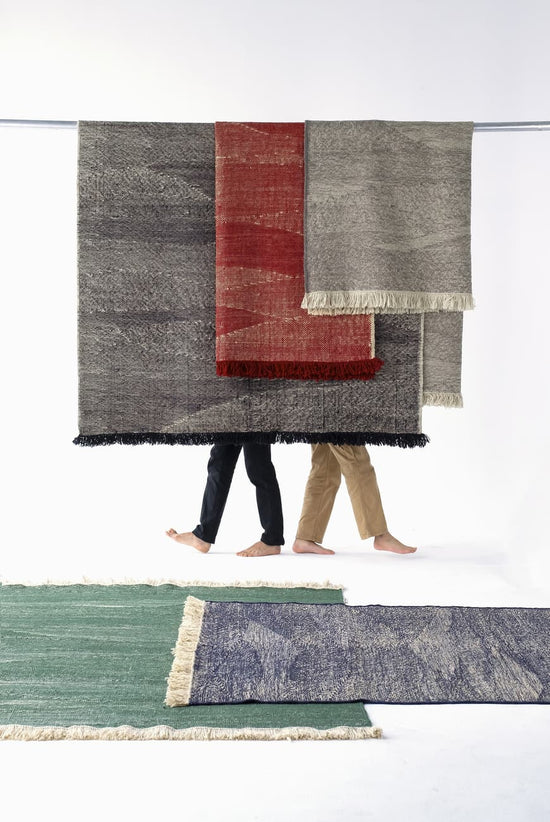 By combining the techniques used in kilims and typical dhurries, the Nanimarquina team has created a unique set of textures and rhythm through the variation and pressure of the fibers. The changes in the pattern, which are born from the tension applied between weft and warp, give the rug an appearance full of nuances, thus evoking the most primary manual work: the insistent trial and error process of the craftsman from which magical results arise.