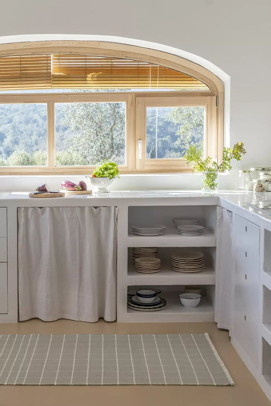 Manufactured using the hand-loomed Dhurrie technique and 100% recycled PET produced in India, Tiles rugs are ideal for places such as kitchens, bathrooms, children's rooms and/or outdoors. This material is very hard-wearing, firm and easy to clean as well as having good thermal properties, making it a very useful and convenient collection for outdoor spaces too. At the same time, by using 100% recycled PET, a material produced through the recovery and reuse of polyethylene waste, we minimize the impact caused by the burning of plastic bottles in India.