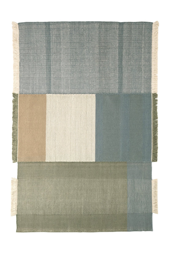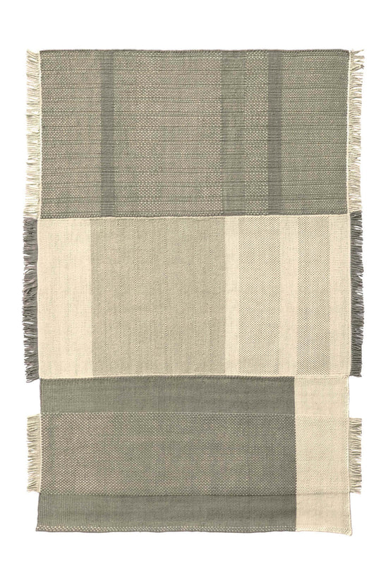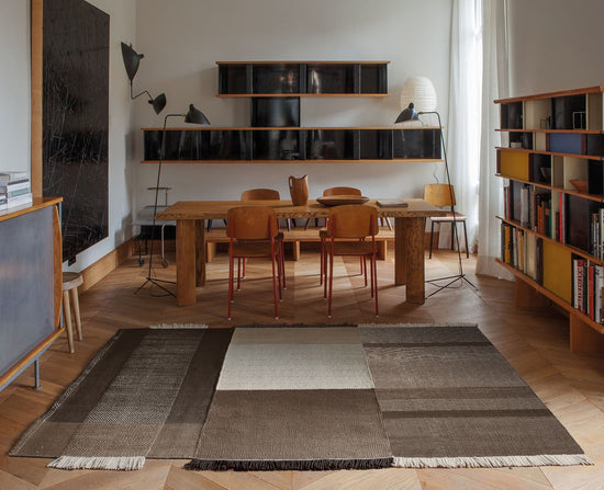 Tres is a traditional Indian flat-weave Dhurrie rug. Its unique quality lies in the production of three independent parts in which different fibres predominate. The proportion and combination of wool, felt, and cotton generate changes in tone and irregularities in the weave, bringing the pattern to life.