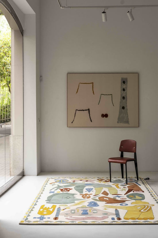 Troupe is a hand-tufted rug, enabling Jaime Hayon's work to be transferred literally, and it is the closest thing to creating from a blank canvas. It is a contemporary piece that nevertheless preserves and brings to life a millenary cultural legacy, as well as having the unique stamp of the craftspeople who make it.