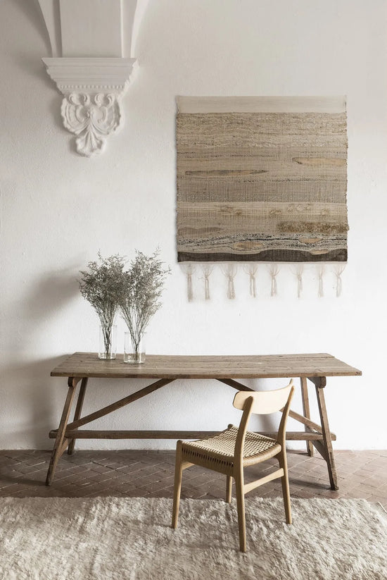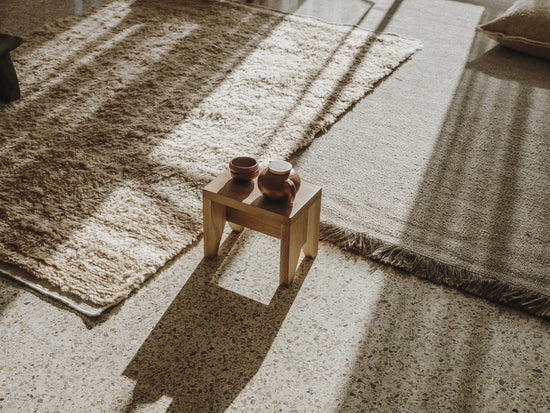 The Wellbeing collection uses hand spun Afghan wool, nettle, jute, linen, Tussar silk as well as cork, wood, raw wool, and raw cotton carefully sourced by nanimarquina’s team, as close as possible to where the pieces from the collection are produced, using traditional craft techniques and local artisans with whom nanimarquina has worked with for a long time.