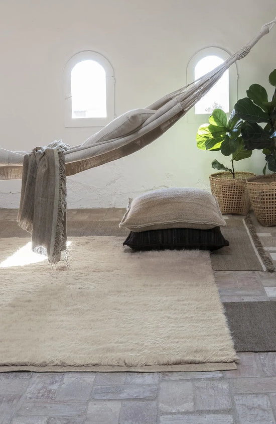 Traditionally, wool is the most widely used material for rugs. Presenting key characteristics, wool offers quality, flexibility, and is 100% biodegradable. It is hypoallergenic, easy to care for, and ages well. In addition, it is considered a great thermal and acoustic insulator as well as naturally regulating humidity. Wool rugs help create cozy and comfortable environments.