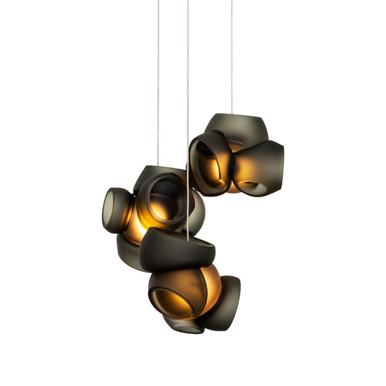 100.3 is comprised of 3 blown glass pendants which attach to a single brushed nickel or white canopy.