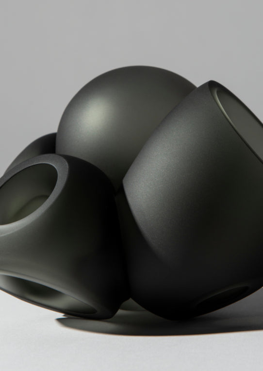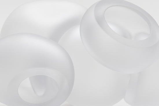 100 brings multiple glass artists together in a performative act. Molten glass bubbles are prepared by each, then smashed together to produce unpredictable interlocking glass forms.