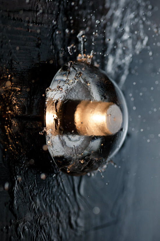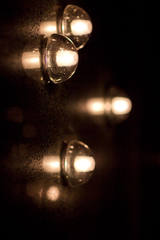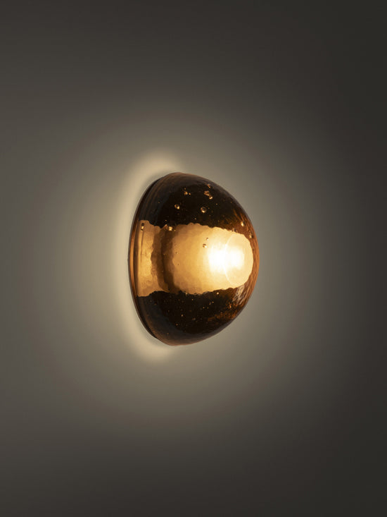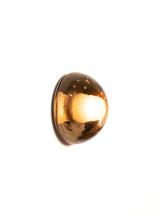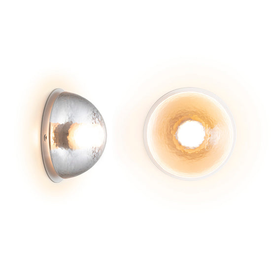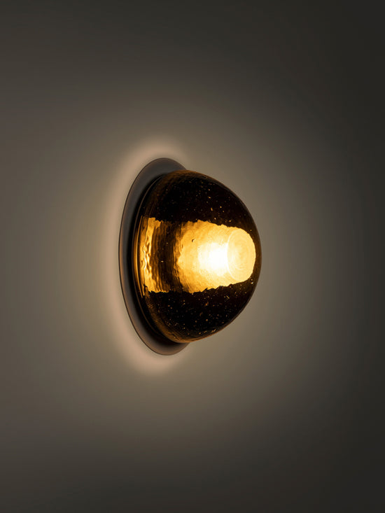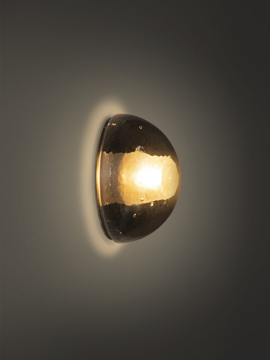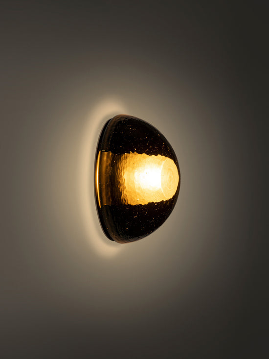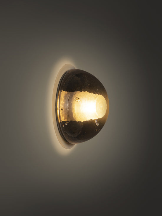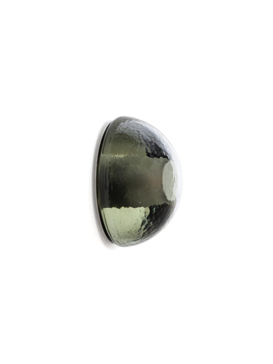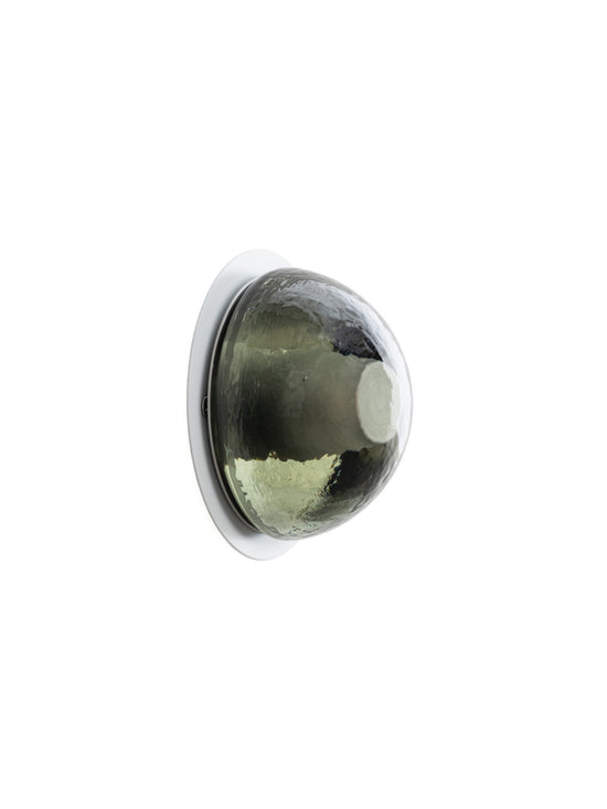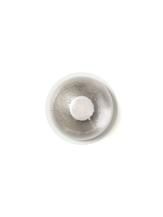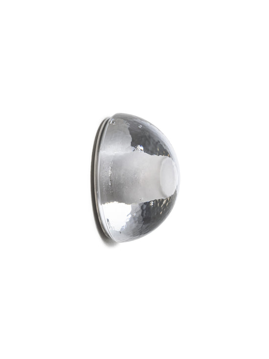 14s/sp is a cast-glass half-sphere with a frosted cylindrical void that houses a low-voltage Xenon or LED lamp. The pendant is designed to be mounted on either the wall or the ceiling.