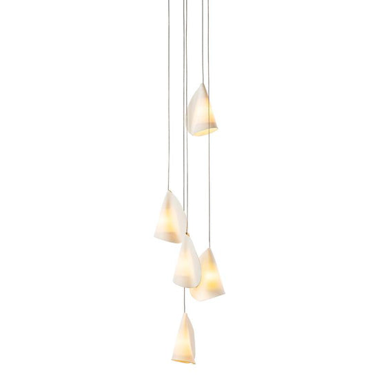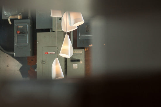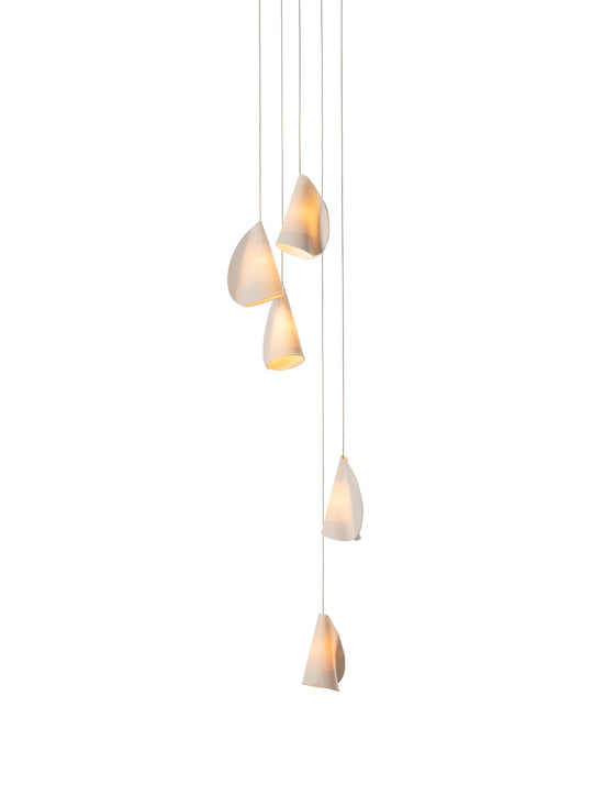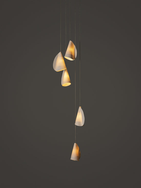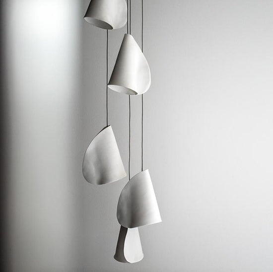 21.5 is comprised of 5 raw porcelain pendants which attach to a single canopy.