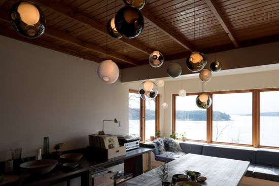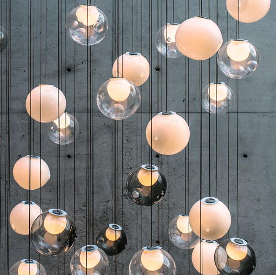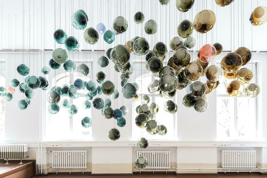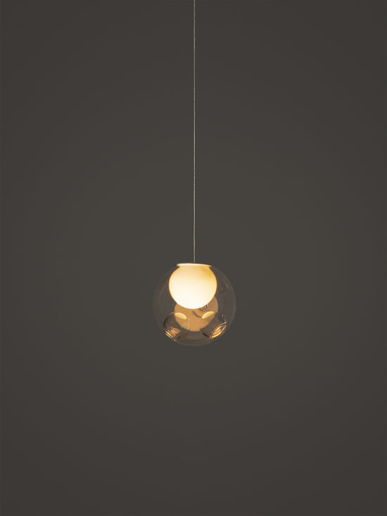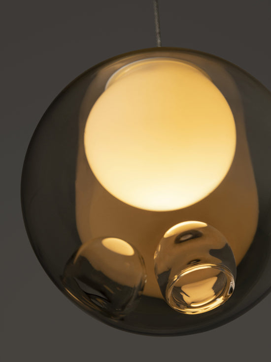 28.1m is comprised of a single hand-blown glass pendant which attaches to a mini canopy.