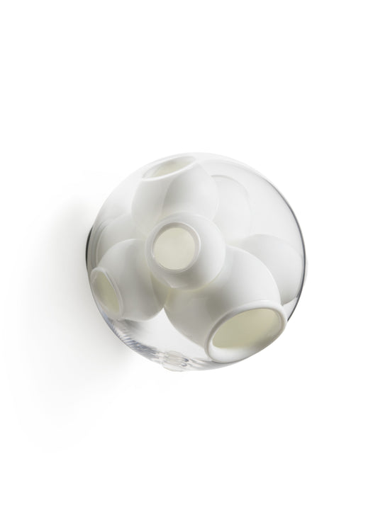 The 38V variant scales down the original 38 series. Its imploded milk-glass openings remain large enough to house small plants.