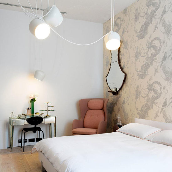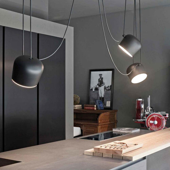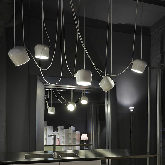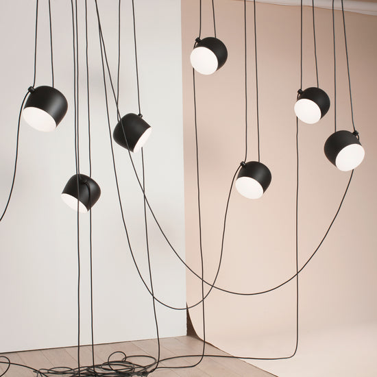 When they created the AIM ceiling light, brothers Ronan and Erwan Bouroullec wanted to keep its core essence limited to the source of light and its cord. By doing that, they ensured that the AIM is versatile enough for any setting not only because of its appearance, but also because it provides a convenient, easily "aimed" light.