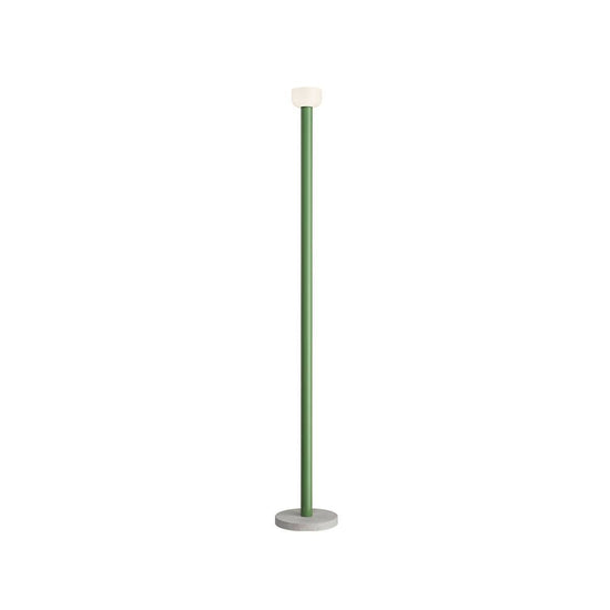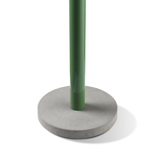 The Bellhop collection designed by Barber Osgerby expands with the introduction of an eccentric up-lit floor lamp. Originating from the Bellhop table lamp design, the designers have flipped the arched diffuser upside down and elongated the body to nearly 6ft high. Bellhop Floor is constructed from painted glass, aluminum, and an eco-friendly concrete base.