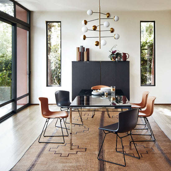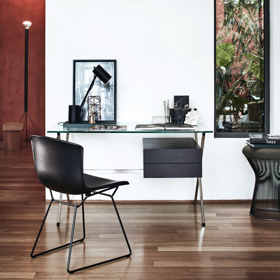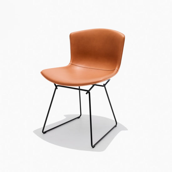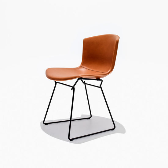 The Bertoia family now includes an exquisite leather-covered side chair. The beautiful leather upholstery is applied over a molded shell seat highlighting the sculptural character of the classic Bertoia design.