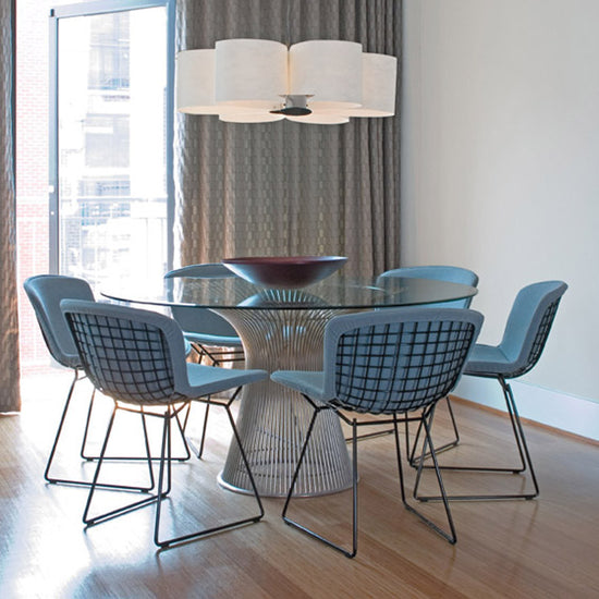 A fully upholstered cover adds softness and texture to the graceful lines and industrial beauty of Harry Bertoia's classic Side Chair. Bertoia’s wire chair collection is among the most recognized achievements of mid-century modern design and a proud part of the Knoll heritage.