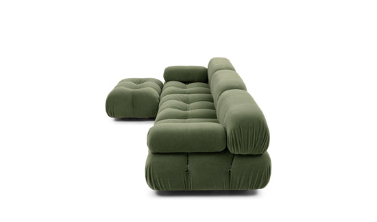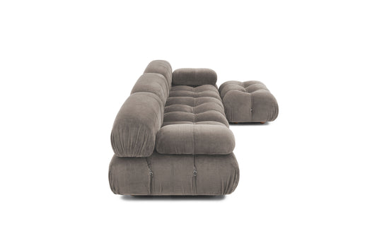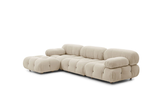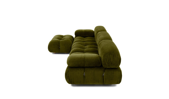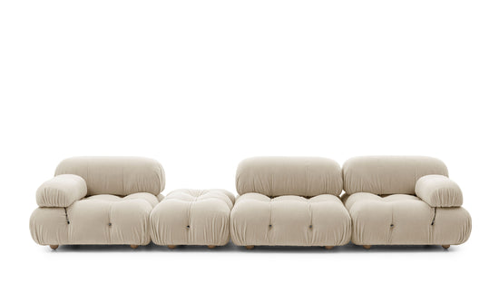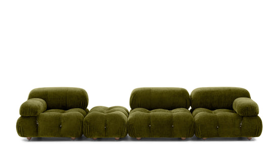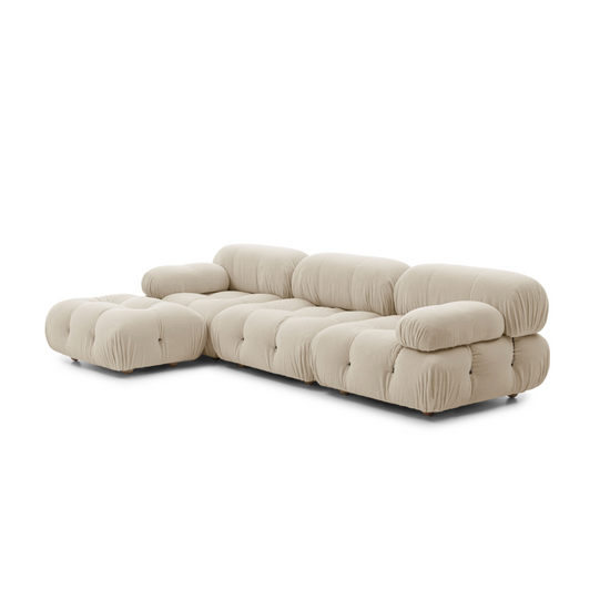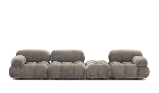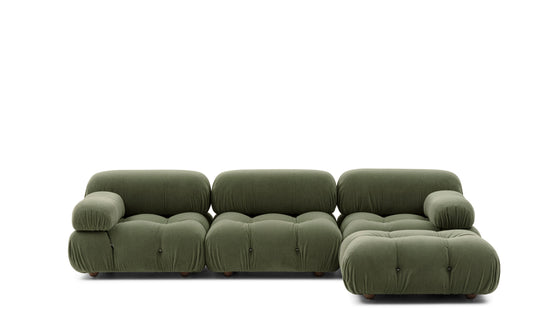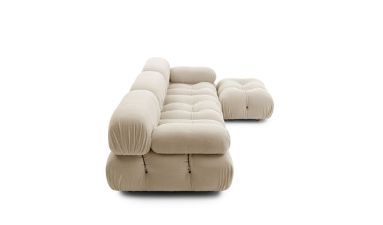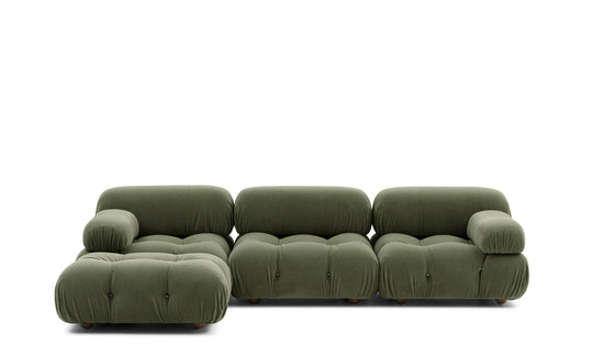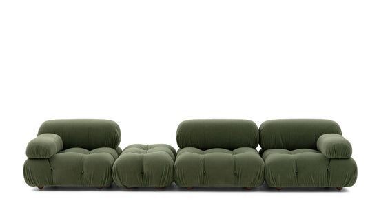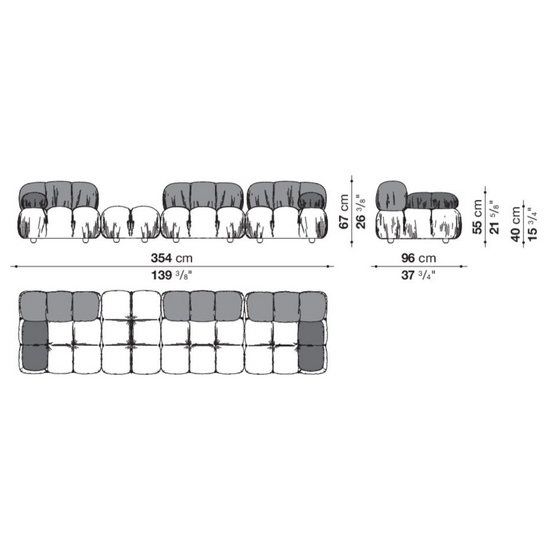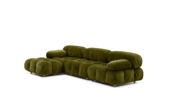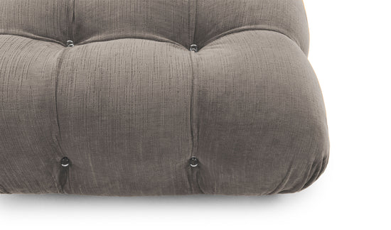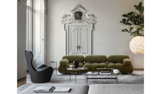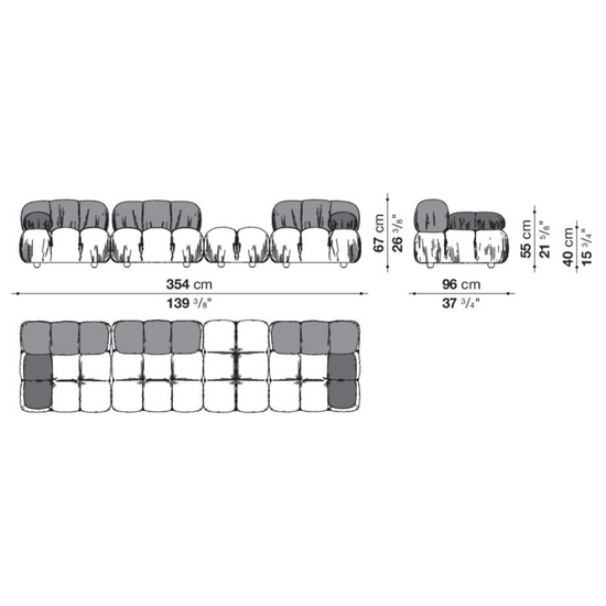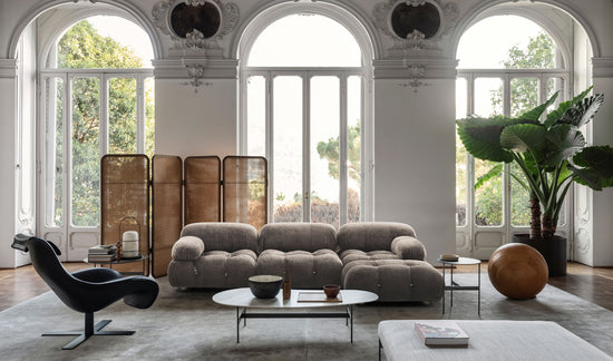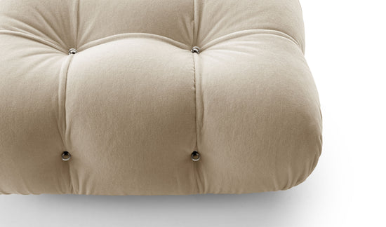 In its new version, Camaleonda preserves the elements that have made it an iconic piece of furniture. Certain elements remain faithful to the original project, such as the 90x90 cm seat module, the backrest and armrest, and the characteristic capitonné design, still manufactured with the innovative system of cables, hooks and rings created by Bellini in 1970, which defines its characteristic look and modularity.