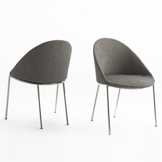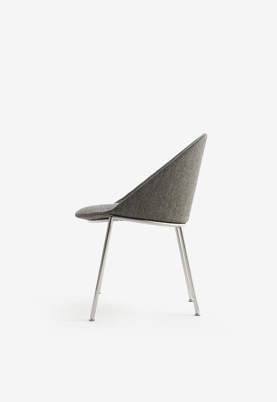 Within the chair are layers of variable density foam and a webbing supported seat ensuring comfort throughout. Numerous base options such as tube or sled complement the upholstered shape and allow for user customization.