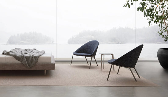 The flowing organic shape envelops the body and provides comfort within a small footprint. A responsive webbing seat is concealed within the formed foam and cradles the user.