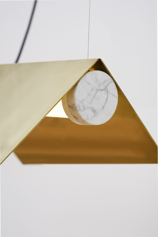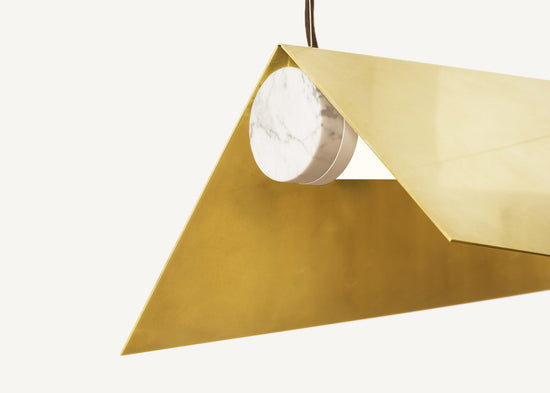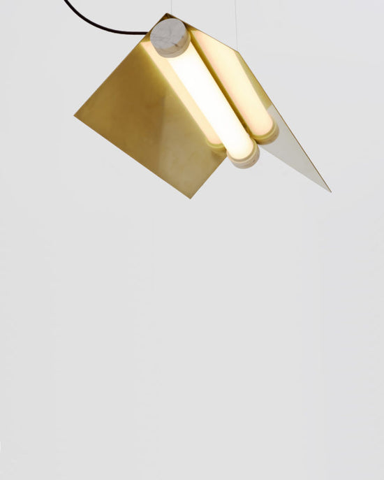 The Clark Collection pushes the limits of form without sacrificing functionality. Bent metal creates shades that both block and reflect the lamp’s light source, casting light evenly. A marble anchor provides a contemporary touch to its surroundings.