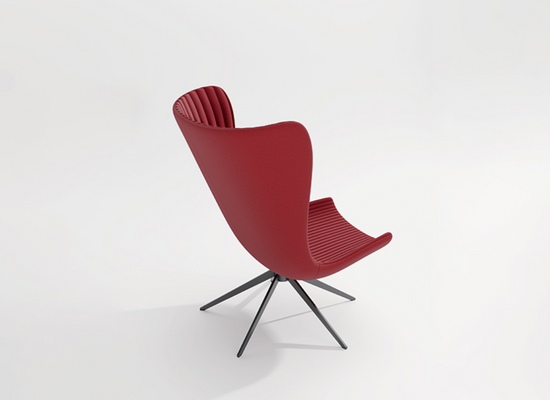 The five-spoke swivel base lends the overall image lightness and motion, recalling that idea of "comfort without gravity" conceived by the designer. The special padding of the seat and the backrest emphasizes the sense of softness and comfort already guaranteed by the laminated fabric upholstery that adds volume to the figure.