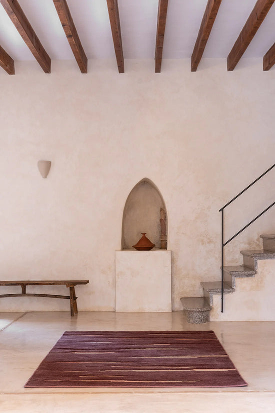 The use of chobi gives these rugs a unique visual richness, which is revealed with changes in light and movement. This inherent characteristic of hand-spun wool, together with the chobi technique, lies in how it is woven: the orientation of the fiber when closing the knot, its length and the density of knots.
