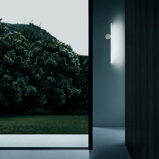 Newly added to the Coordinates collection: Wall-mounted sconces providing diffused light by composed of a horizontal bar (Wall 1) or vertical and horizontal bar (Wall 2). Each bar is composed of: extruded and processed aluminium body anodized in a champagne colour; diffuser in platinum optical silicone; integrated LED strip (CRI 90).