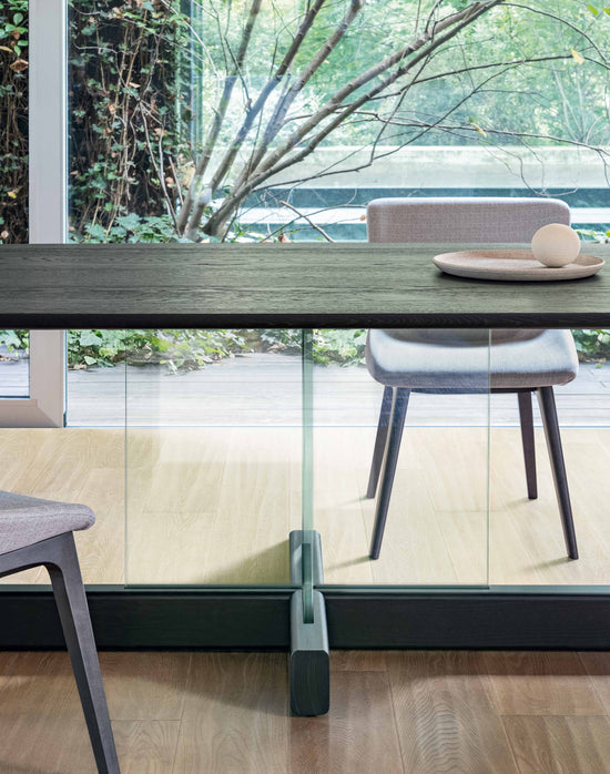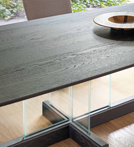 The top of Cross Table rests only on a thin structure, but it is the wooden base in the shape of a cross that gives the table its solidity and structural force. The design of the table offers a collective vision where the role of each element emerges in relation to the others in an appealing contrast between straight lines and soft curves, between masculinity and femininity.