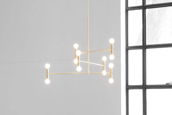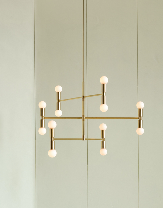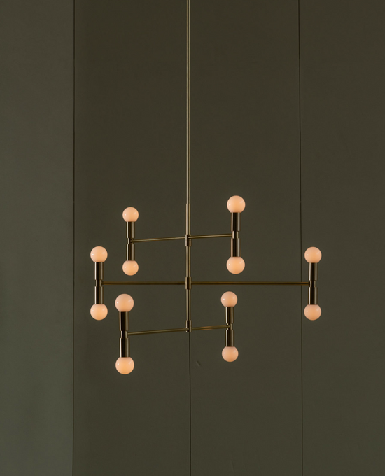 The Dot Collection combines the directness of exposed, spherical bulbs with the rich materiality of brass. Focused, geometric compositions contain these two features, balancing line, surface, and luminous points. The result is a collection of lamps based in the reflectivity of brass—lamps that are both atmospheric and firm.