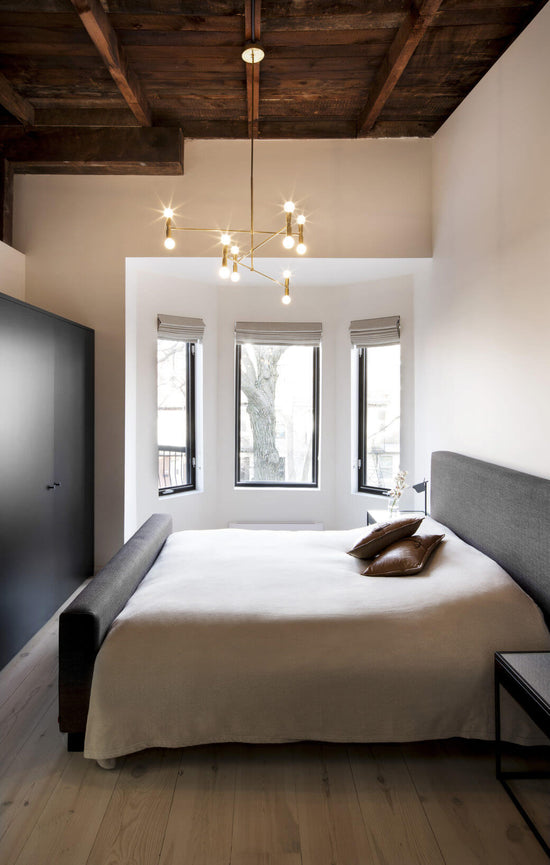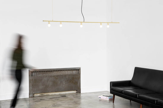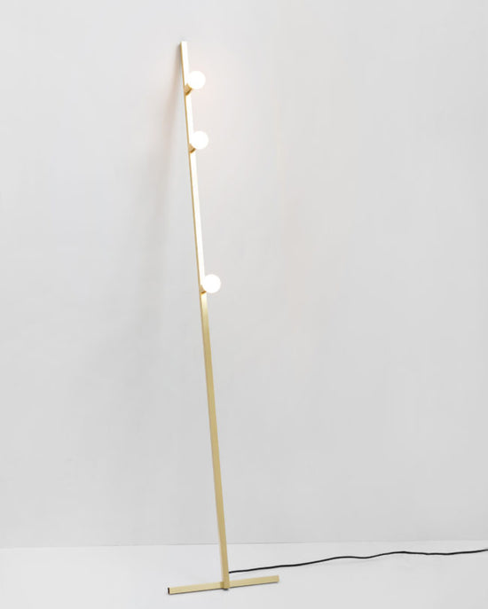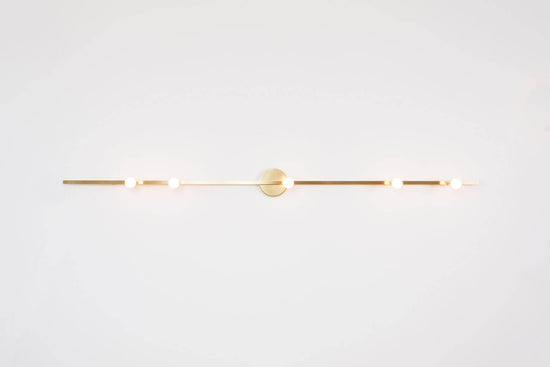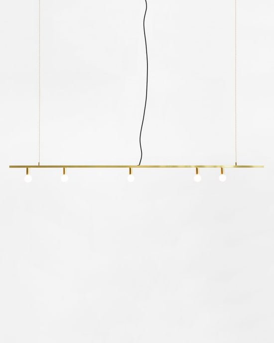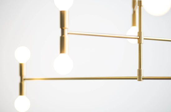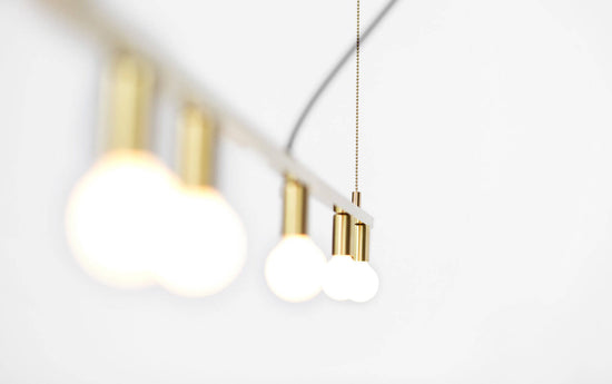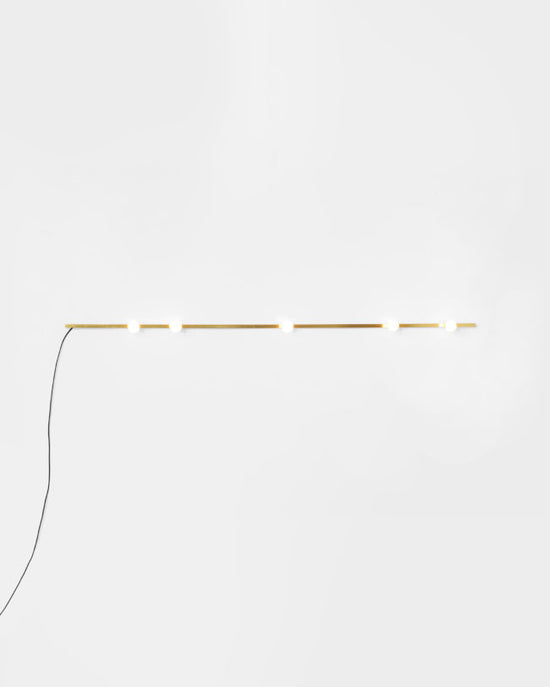 The Dot Collection combines the directness of exposed, spherical bulbs with the rich materiality of brass. Focused, geometric compositions contain these two features, balancing line, surface, and luminous points. The result is a collection of lamps based in the reflectivity of brass—lamps that are both atmospheric and firm.