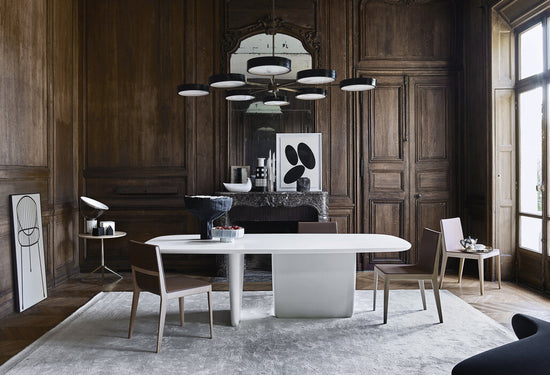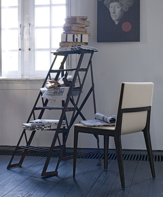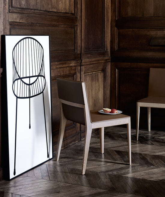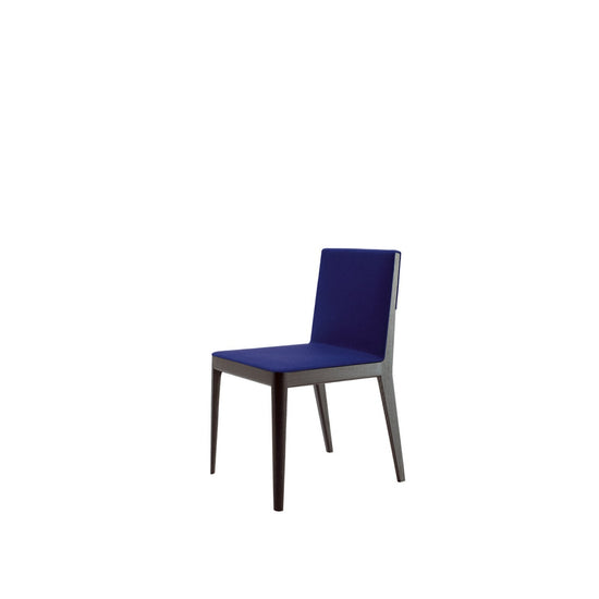 This chair combines geometry and softness, expert woodworking skills and technology. Designed with important details, including the padded body that runs along the perimeter of the seat and backrest. The wooden frame visually reduces the volumes of El, concealing the foam, whose thickness guarantees remarkable comfort and a certain degree of flexibility.