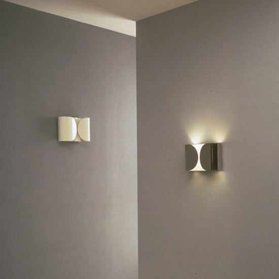 Resembling a shirt cuff, the contemporary Foglio wall lamp from design master Tobia Scarpa is a mixture of timeless and contemporary design. The lamp’s body is formed by power-painted pressed steel. The two lamp supports are injection-molded white nylon. The Foglio emits indirect light. It is HPF electronic ballast standard.