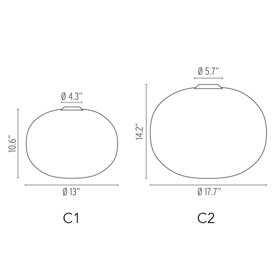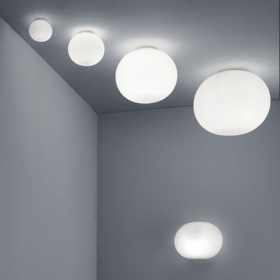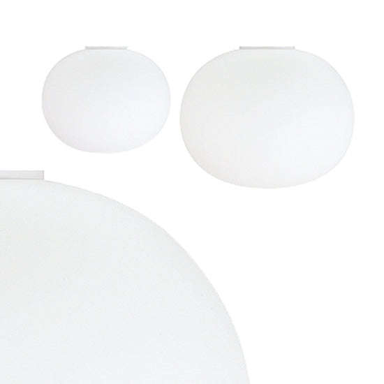 Part of the popular Glo-Ball Series, the Glo-Ball C ceiling mounted fixture was created by designer Jasper Morrison. Its shape invokes the radiant calm of a full moon. The Glo-Ball C’s diffuser is made of externally acid-etched, hand-blown, flashed opaline glass and a die-cast aluminum threaded ring nut with alodine plating finish. The lamp includes a 30% fiberglass reinforced injection-molded polyamide ceiling fitting and a grey-painted die-case.
