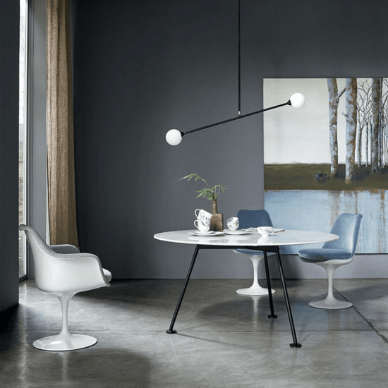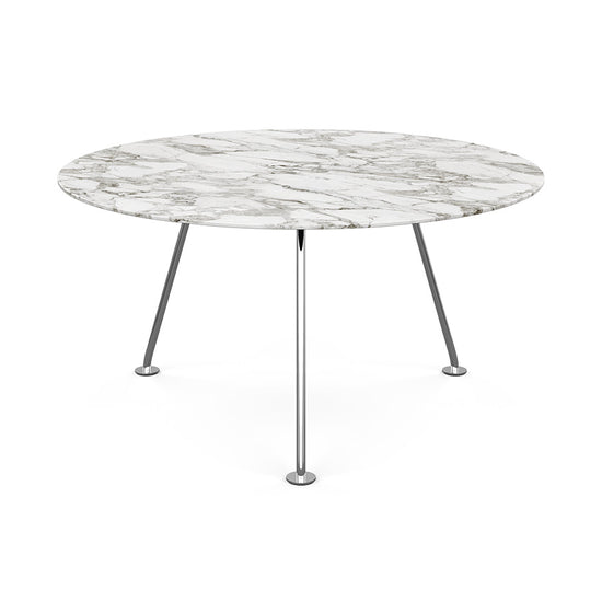 The elegance of the Grasshopper table is derived from its distinct combination of slender surfaces in soft organic forms and a high-performance steel structure. The tabletop’s thin edge evokes a feeling of weightlessness and adds an equally refined touch to the home or office. The 54" table seats up to 6. The 60" table seats up to 8.