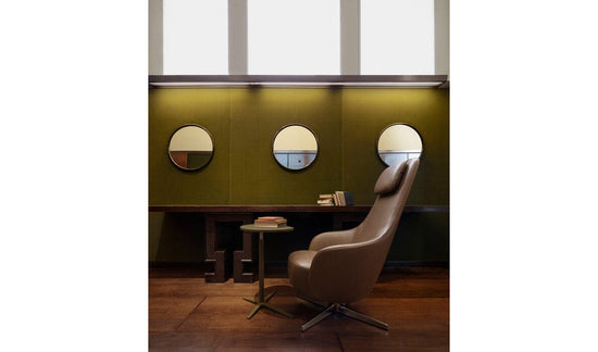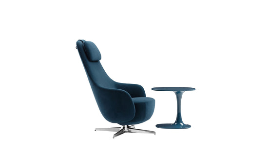 Harbor Laidback is a versatile and innovative armchair that redefines the concept of relaxation continuing the tradition of the Harbor armchairs, a classic it shares the origin of the inverted truncated cone shape and the harmonious and flowing line. Equipped with a swivel aluminium base with four spokes, Harbor Laidback has an unprecedented mechanism, perfectly hidden in the frame, that allows the simultaneous movement of the backrest and the seat.