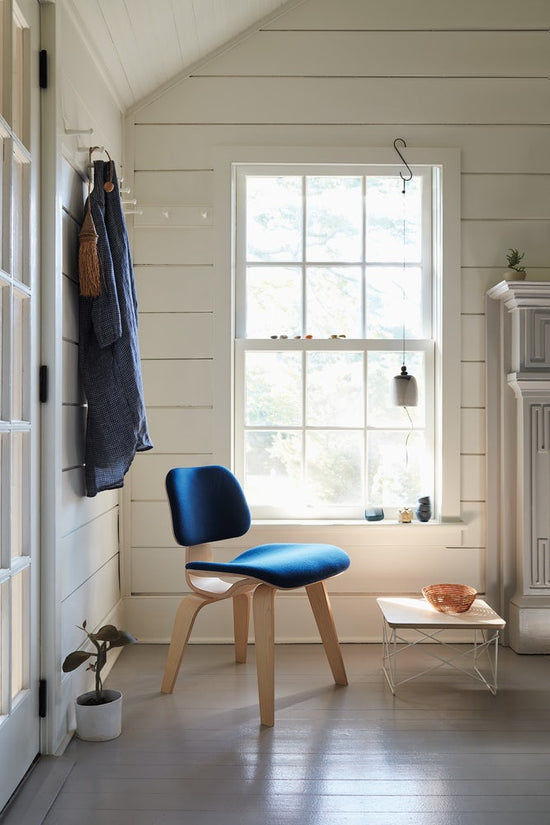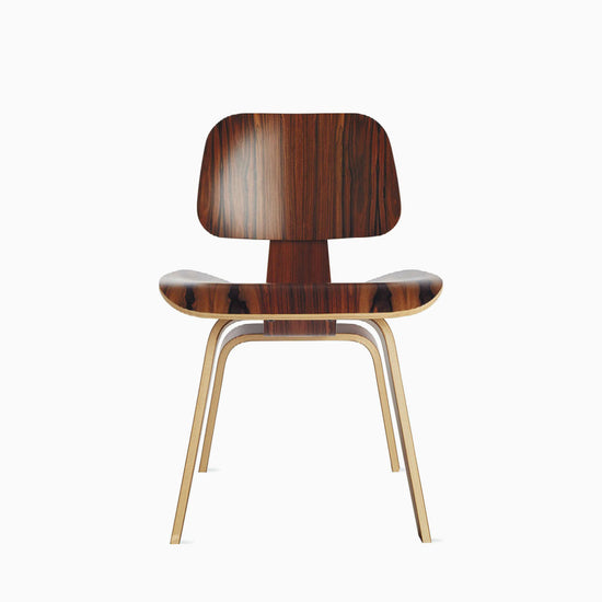Hailed by Time magazine as the Best Design of the 20th Century, the iconic DCW or “Dining Chair Wood” (1946) began as an experiment in the Eameses’ apartment, where they were molding plywood in what they called the “Kazam! Machine.” The machine pressed thin sheets of wood veneer against a heated membrane that was inflated by a bicycle pump. Humble beginnings for what would become one of the world’s most widely recognized and highly coveted chairs.