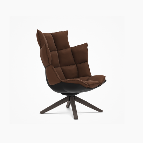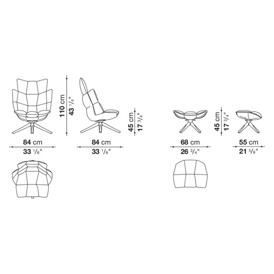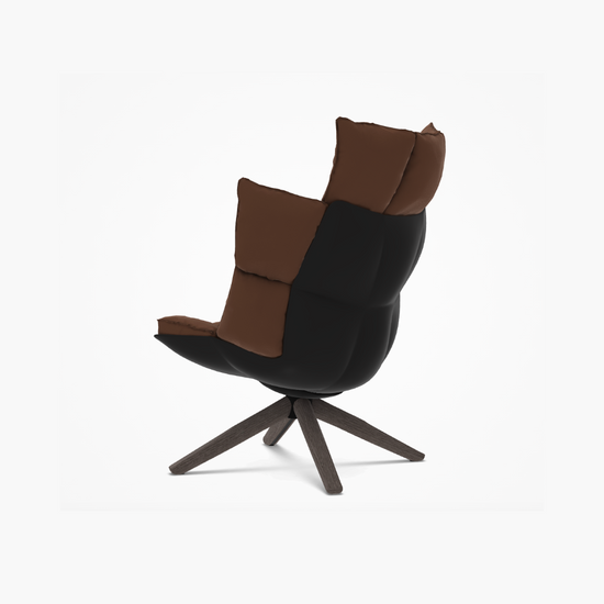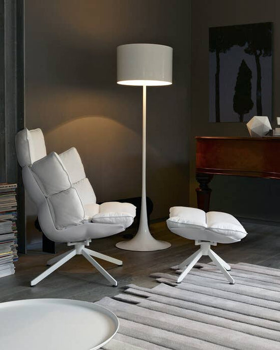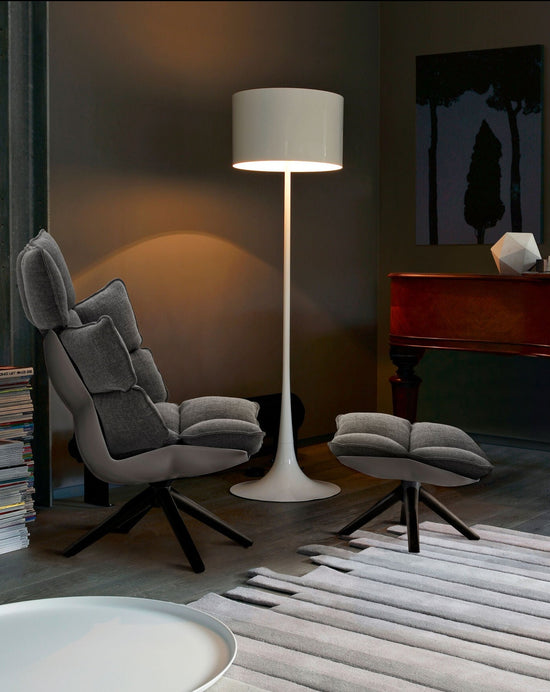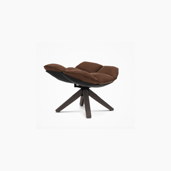 The Husk armchair and footrest can be ordered in endless configurations and upholstered with the entire B&B Italia textile and leather range, offering countless options.