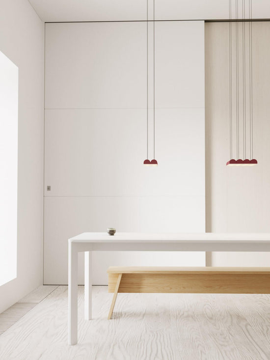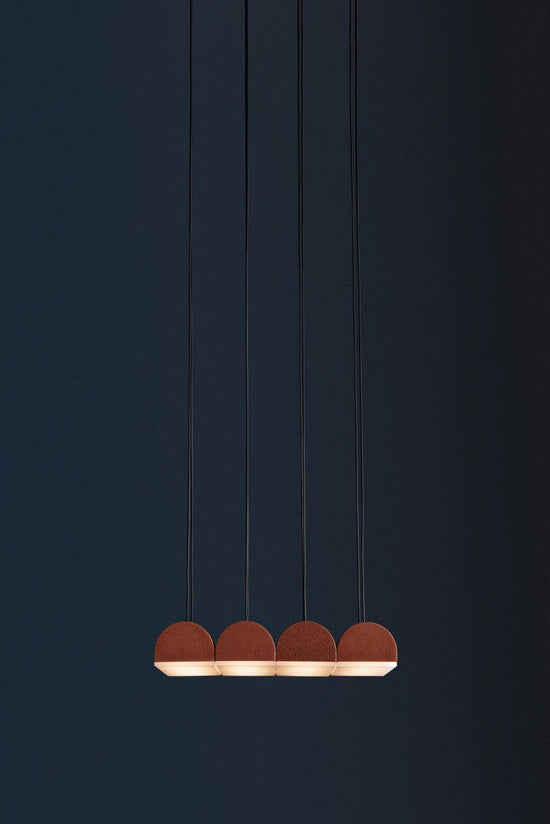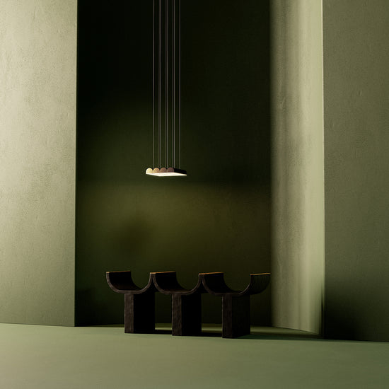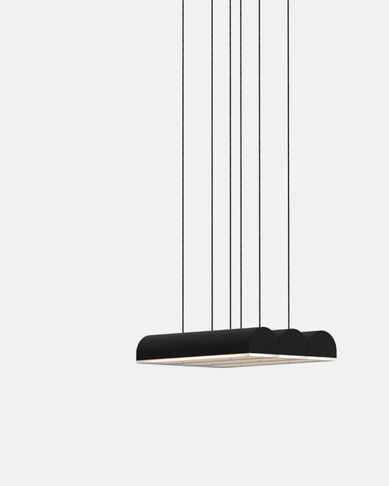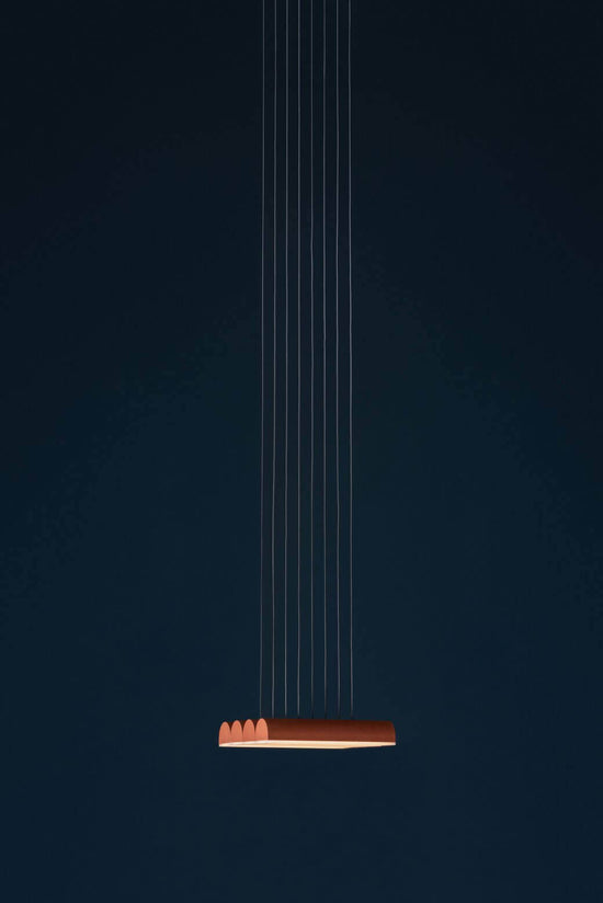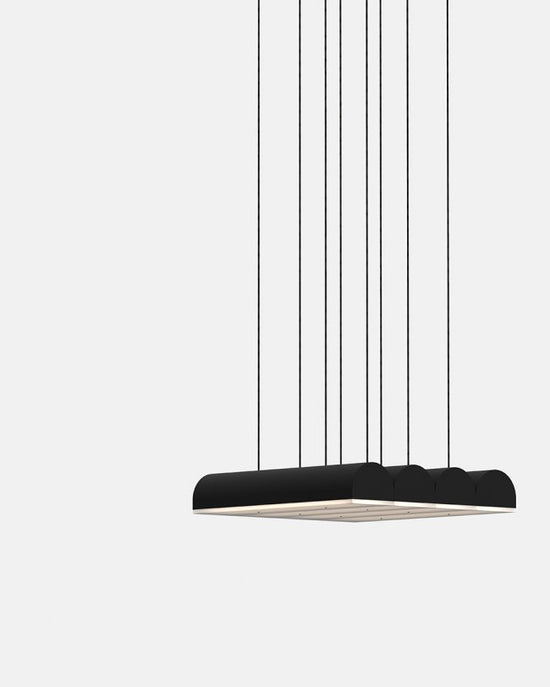 Hutchison is the thoughtful study of soft curves and hard lines—a rivalry of vertical and horizontal forces and a play of scale and repetition. Alone, it self-defines as a frank, decorative pendant light. In multiples, it evokes the iconic patterns of Middle Eastern archways and Roman terracotta roofs.
