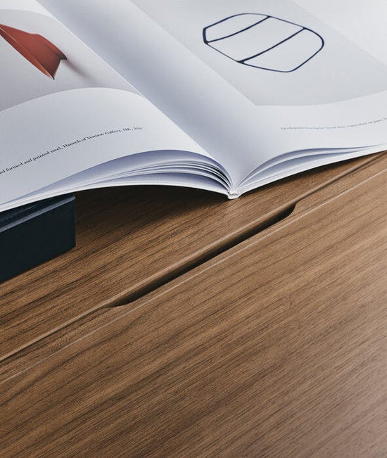 The system features numerous elements which can be combined to increase the system’s functionality. These include new, deeper shelves, storage elements such as drawers, and flap doors. From an aesthetic point of view, all the elements of the Jack wall system are available in two colours, to which Canaletto walnut and four oak finishes are added as an option for the shelves and storage units.
