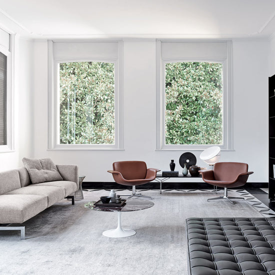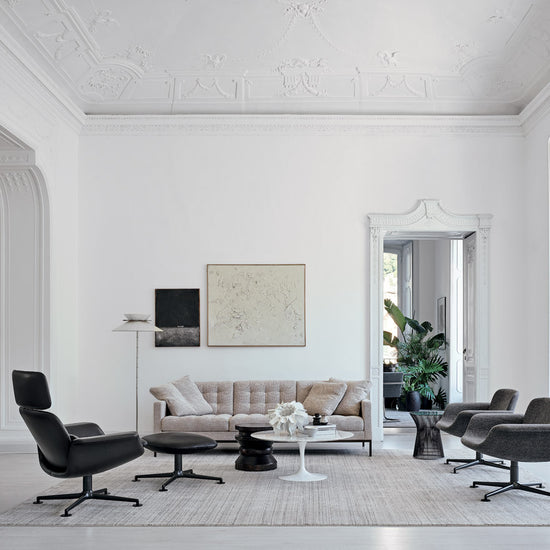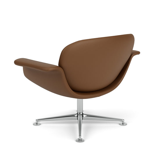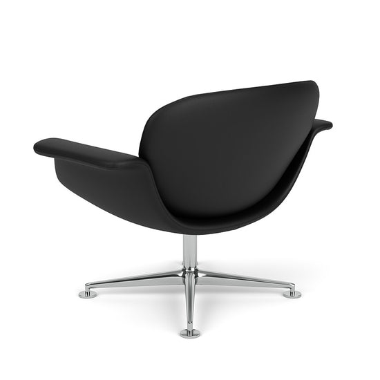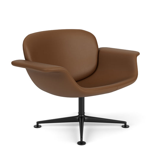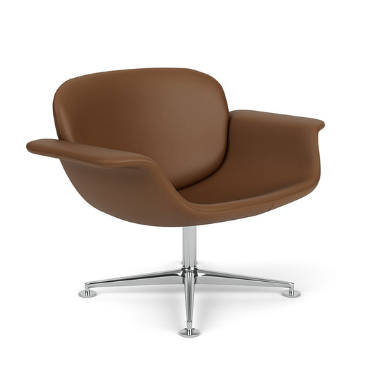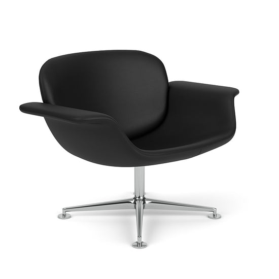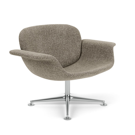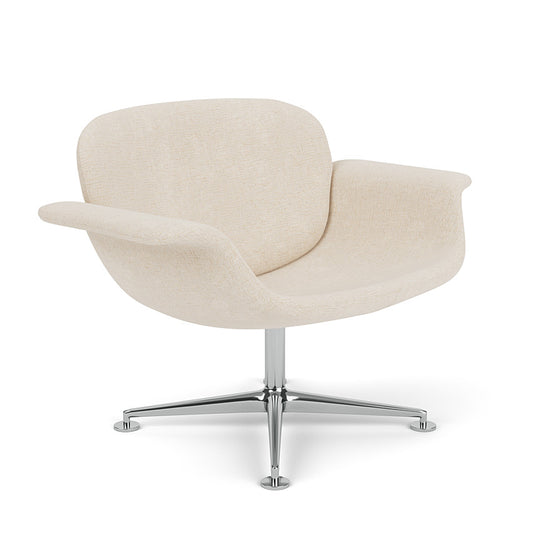 KN01, a low-back lounge chair, features a curved silhouette and aluminum base. Its balanced proportions deliver a compact footprint and inviting form ideal for modern living, meeting and community spaces.