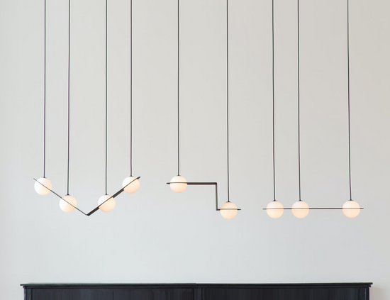 The Laurent Collection distills the milk globe to its essential relationship between circle and sphere. A series of thin forms compliment the Laurent globes—forms that combine in endless patterns and carve through space.