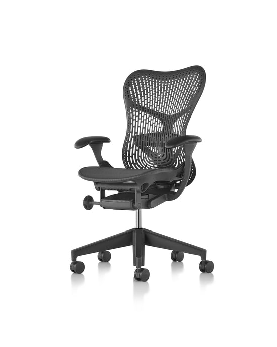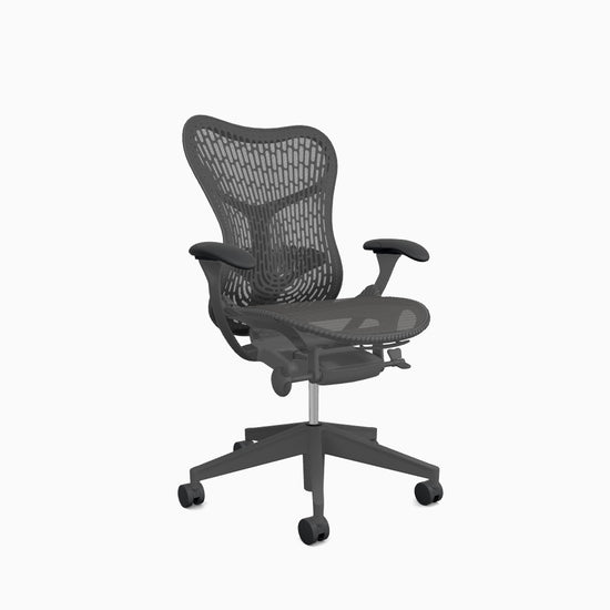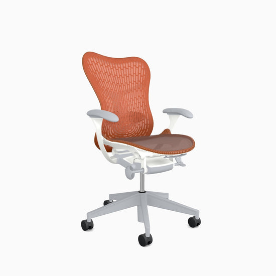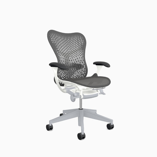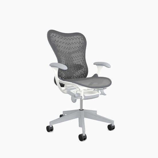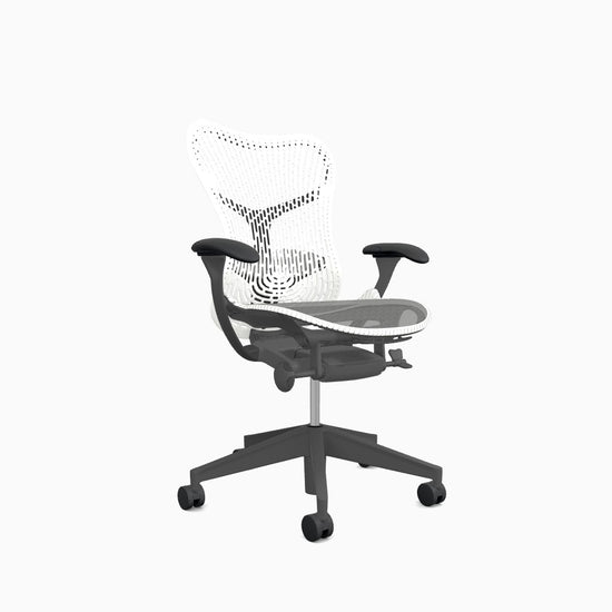 Designed for freedom and movement, the Mirra office chair is for people whose work style doesn't leave much room for sitting still. The intuitive adjustments and dynamic materials support a range of bodies, making this flexible office chair the perfect seat to share with coworkers and family. Mirra 2 comes with two back options to further fine-tune your fit: The ultra-responsive Butterfly Back for a dynamic suspension membrane and the durable, easy-to-clean TriFlex back.