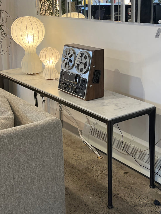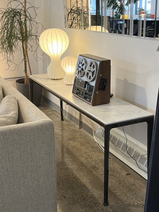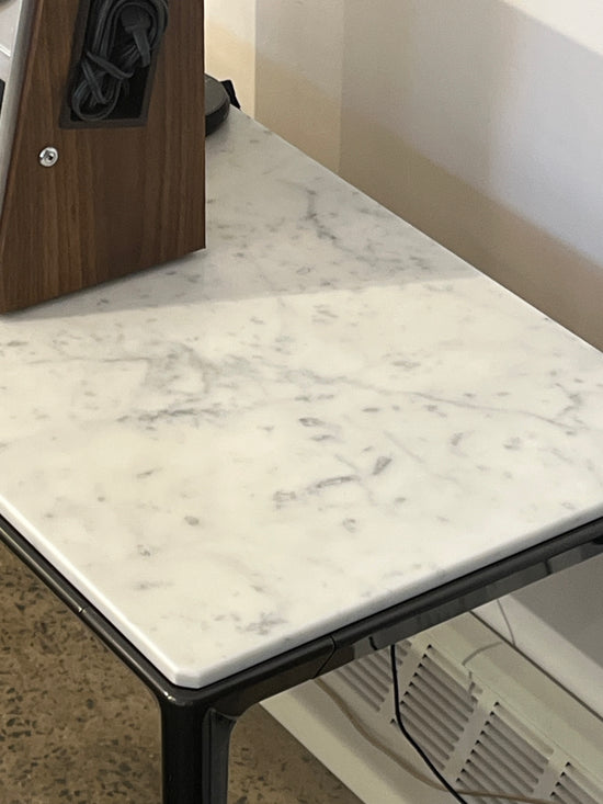Material: Carrara marble top with painted die-cast aluminium frame.