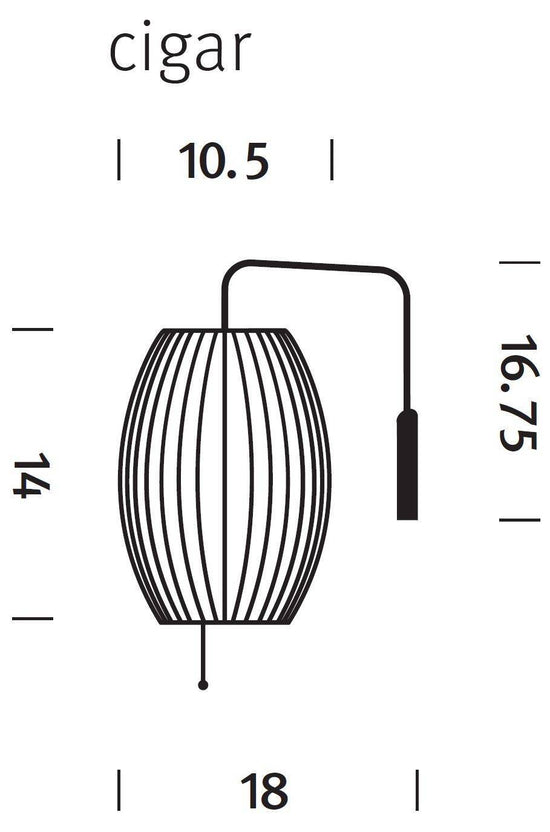 The elongated sphere shape of the Nelson Cigar Wall Sconce is designed to be attached to a wall with the help of a walnut wall-mount and a steel arm that has a swivel hinge and a 12-foot plug-in cord. This design allows the light to be easily readjusted sideways, or to be shifted higher or lower.
